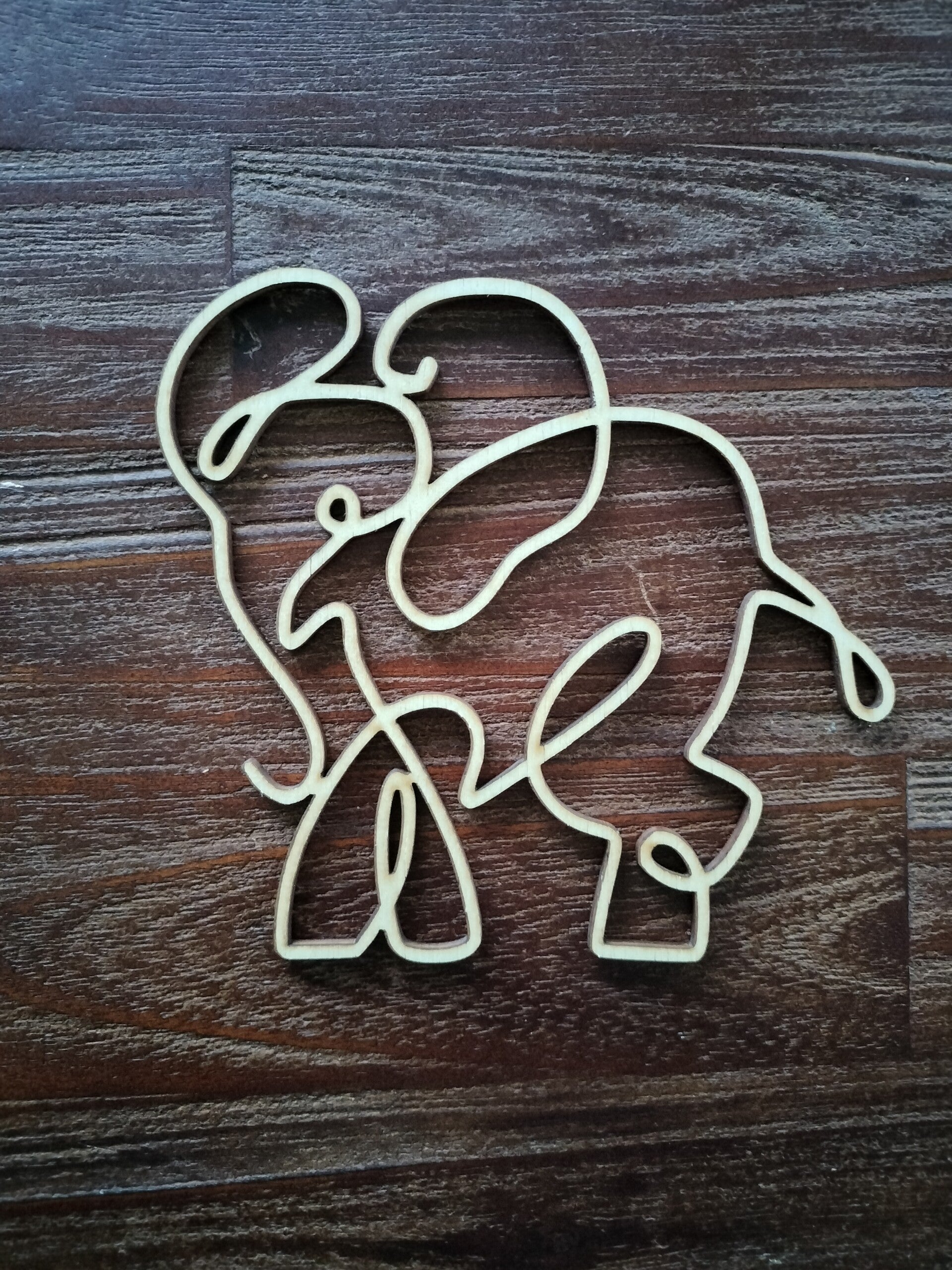 Zeer leuke olifant, ditmaal geen geometrische vorm, maar een mooi lijnenspel.Te verkrijgen in diverse maten .30 cm x 28 cm 40 cm x 38 cm50 cm x 47 cmNog groter?