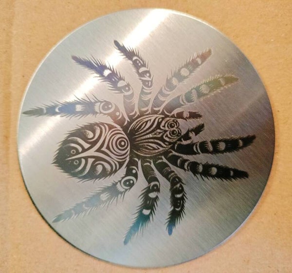 Roesvrij stalen onderzetters.Thema spinnen.Ander thema?Tekst erbij?Logo van uw bedrijf ? Ook op leisteen of hout ipv rvs is mogelijk.Er is veel mogelijk, neem contact met ons op en we kijken dan graag met u naar de mogelijkheden.