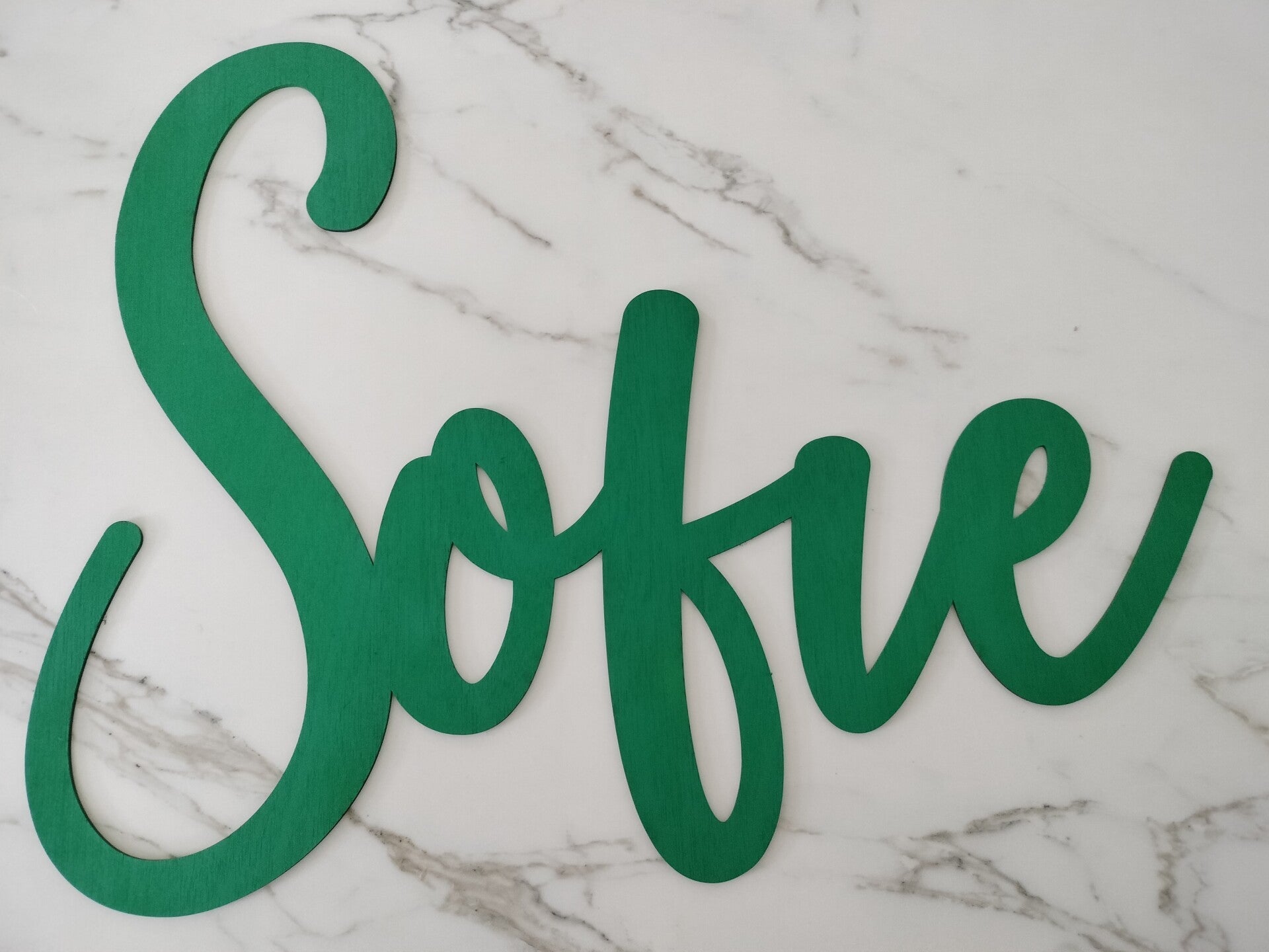 Letters uit hout gelaserd.