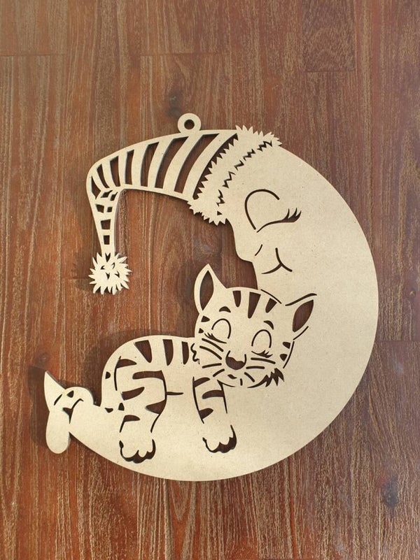 Zeer rustgevende maan met slapende poes.Formaat : 27 hoog x 25 cm breed.Groter of kleiner ook mogelijk.Neem hierover contact met ons op.Diverse kleuren.