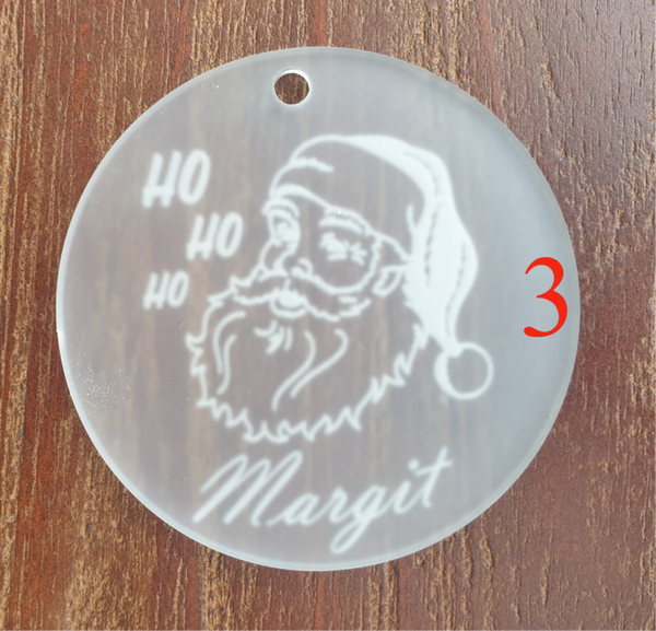 Doorzichtige kerstballen met naam.